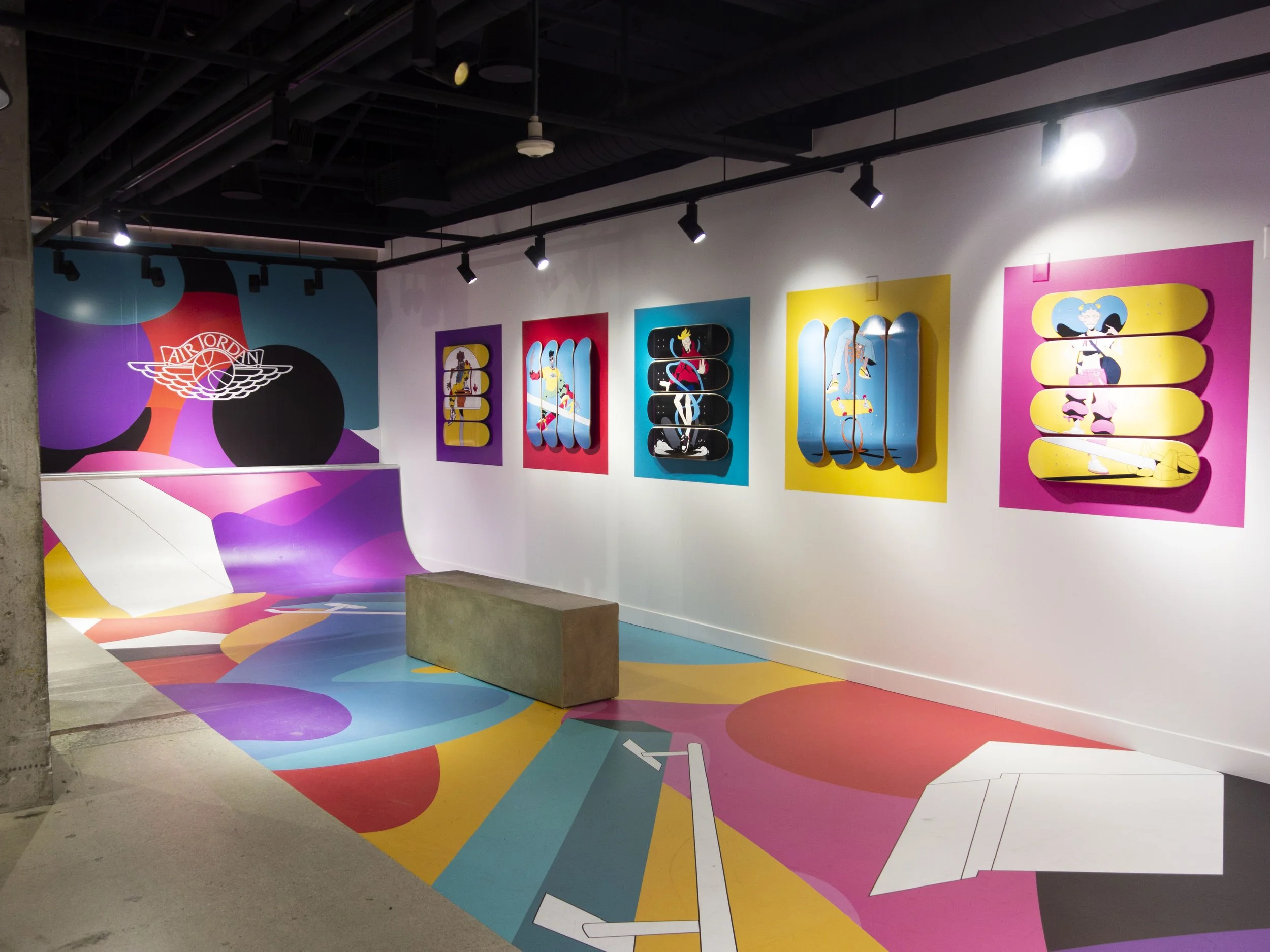 The Jordan team’s only request was that the skate ramp be reminiscent of the vintage classics. The space was used as a promotional activation during the sneakers release and was open to the public. The Toronto Adrift Skate team came by and gave their stamp of approval.